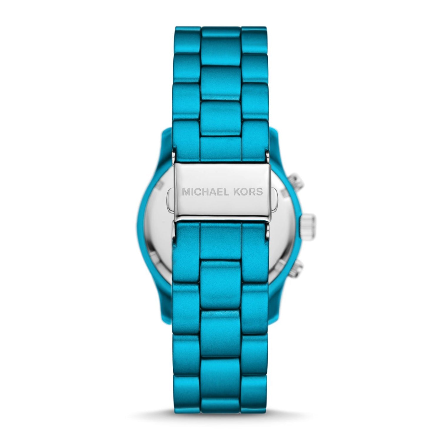Look modish by donning this women's analog watch from the collection by Michael Kors. The blue round dial is protected by a mineral glass. It features a crown for time adjustment. The stainless steel strap comes in a blue hue that further elevates the look of the timekeeper. Besides, it is completed with a double locking fold-over clasp to ensure a secure fit on the wrist.