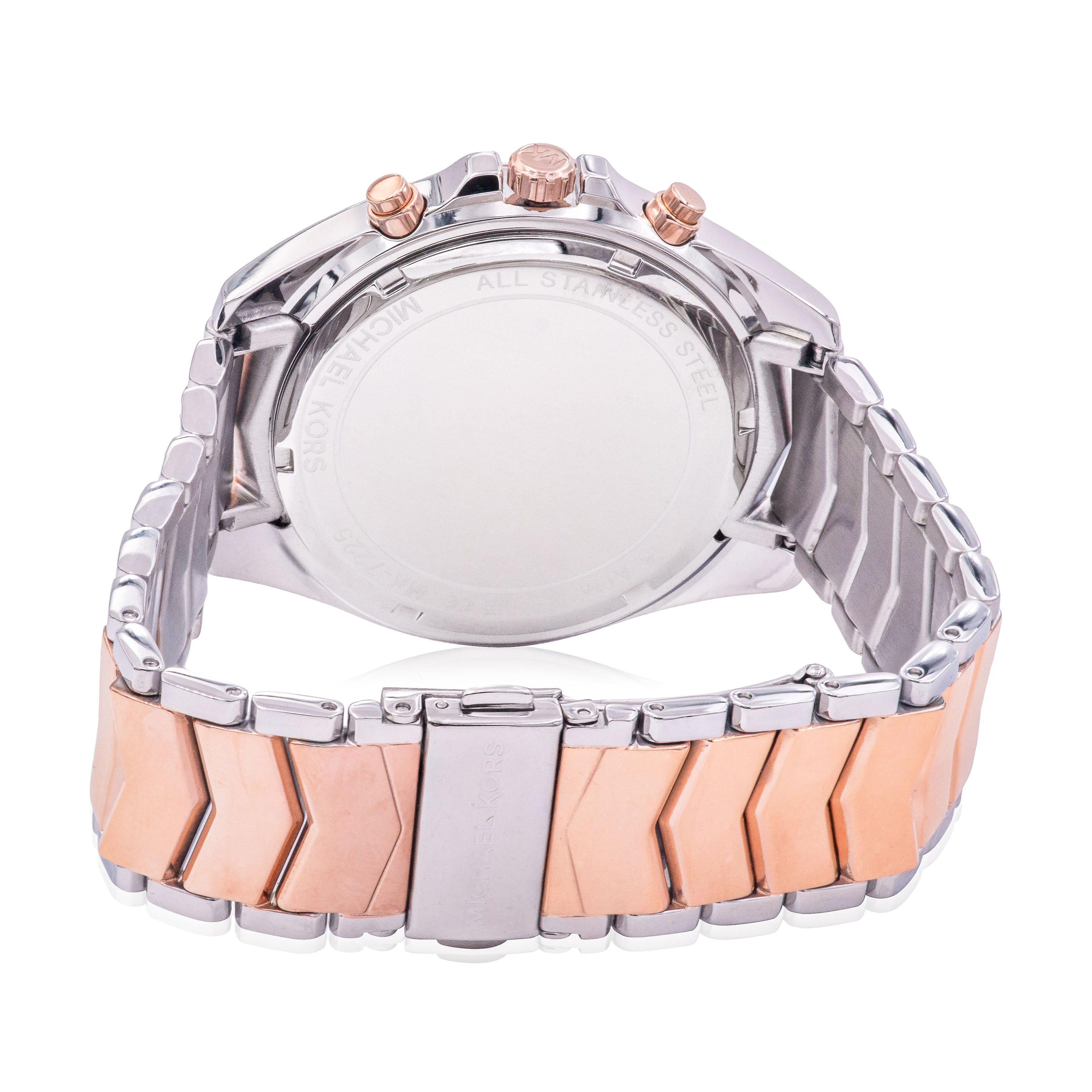 This 44mm Whitney watch features a silver dial with rose gold-tone stick indexes, three-hand movement and two tone silver and rose gold-tone stainless steel bracelet.
