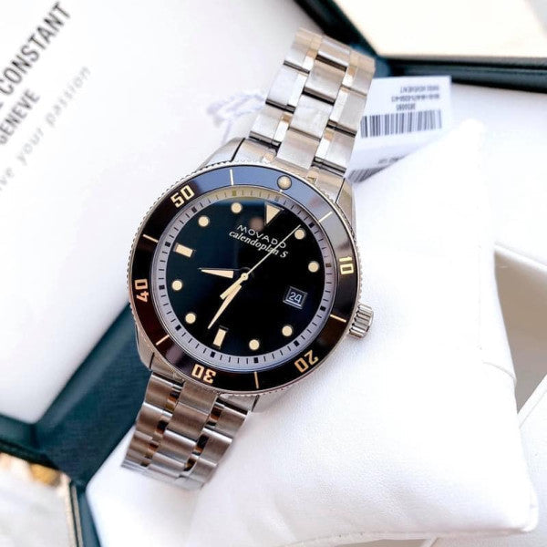 Brand Movado Model 3650095 Series Heritage Calendoplan Case Material Stainless Steel Case Diameter 40mm Dial Color Black Movement Swiss Quartz Crystal Scratch-Resistant Sapphire Water Resistance 30 meters (100 feet) Bracelet Material Stainless Steel Clasp Type Deployment Functions Hours, Minutes, Seconds, Date