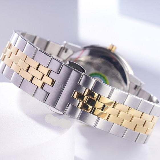 Men's Museum Classic watch, 40 mm stainless steel and yellow gold PVD-finished case, black Museum dial with yellow gold-toned dot and hands, stainless steel and yellow gold PVD-finished link bracelet with deployment clasp.
