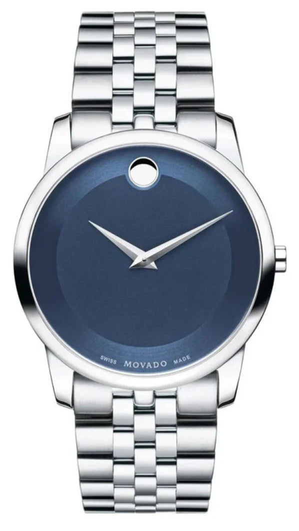 Movado Museum Classic Collection Comes with Quartz Movement with Sapphire Glass Blue Round Dial with 40 mm Stainless Steel Silver Color Stainless Steel Strap/Band Along with 2 Years Warranty Period