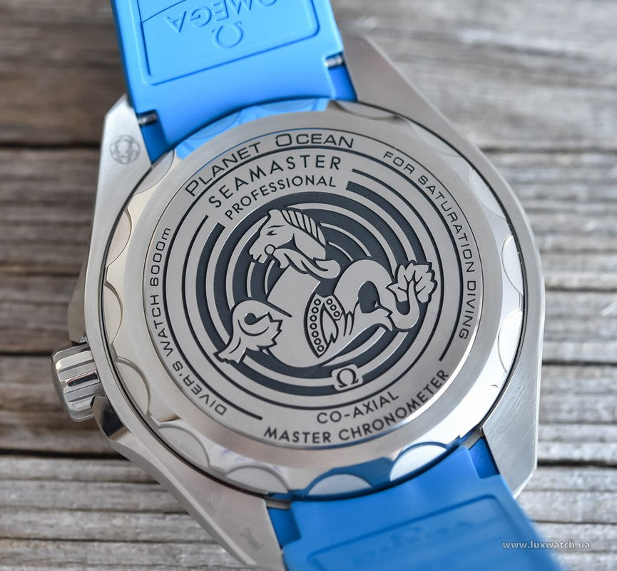 The watch is set on a rubber strap with cyan lining and an O-MEGASTEEL buckle, while on the caseback's Grade 5 titanium medallion, there is a laser-engraved Sonar emblem with the iconic OMEGA Seahorse at its centre. Inside, the watch is driven by the OMEGA Co-Axial Master Chronometer Calibre 8912.