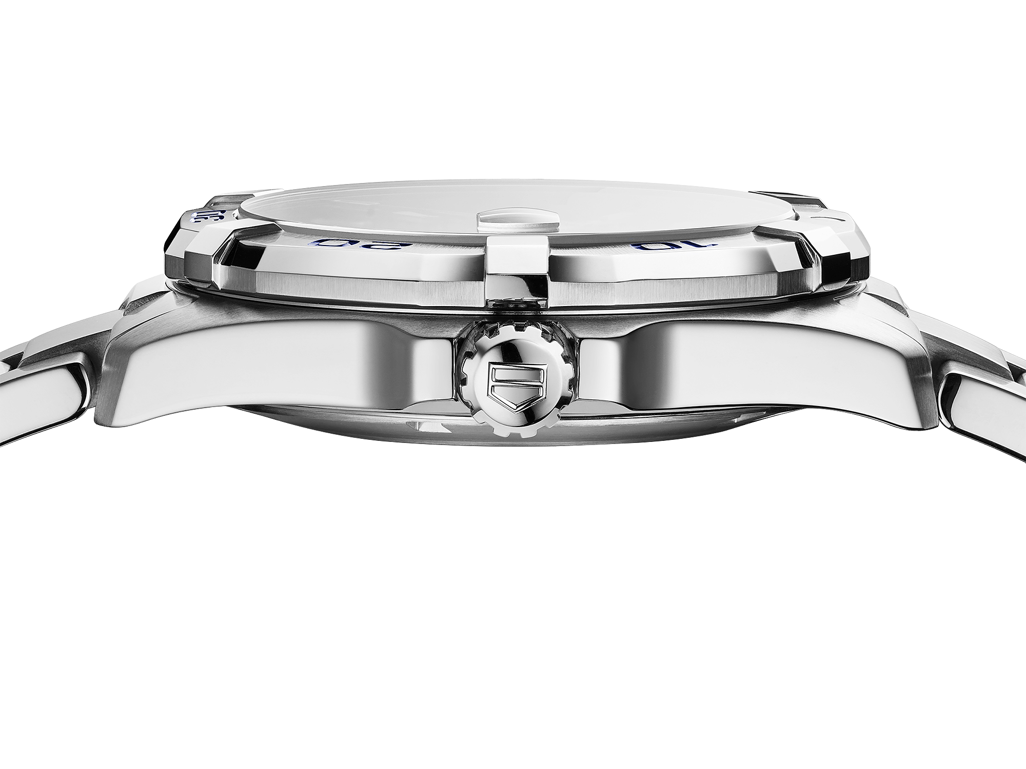 Stainless steel case with a stainless steel bracelet. Uni-directional rotating stainless steel bezel. Blue dial with luminous silver-tone hands and index hour markers. Minute markers Dial Type: Analog. Luminescent hands and markers. Date display at the 3 o'clock position. TAG Heuer calibre 5 automatic movement, based upon ETA 2824-2, containing 26 Jewels, bitting at 28800 vph, and has a power reserve of approximately 38 hours.
