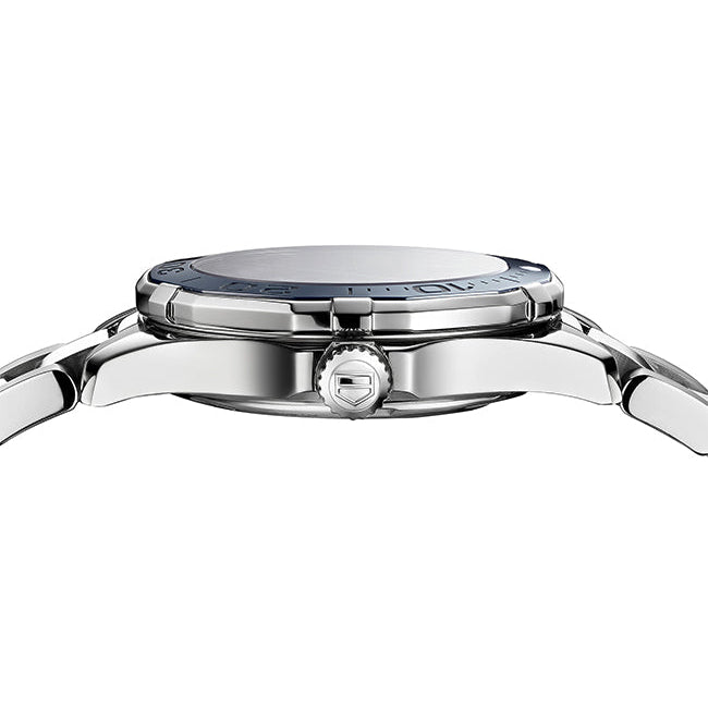 TAG Heuer Aquaracer 35mm watch. Model reference: WAY131S.BA0748. Stainless steel case. Blue mother-of-pearl dial. Quartz movement. Stainless steel bracelet. Swiss made. The watch comes in the original packaging, with a set of documents and 2 years warranty.