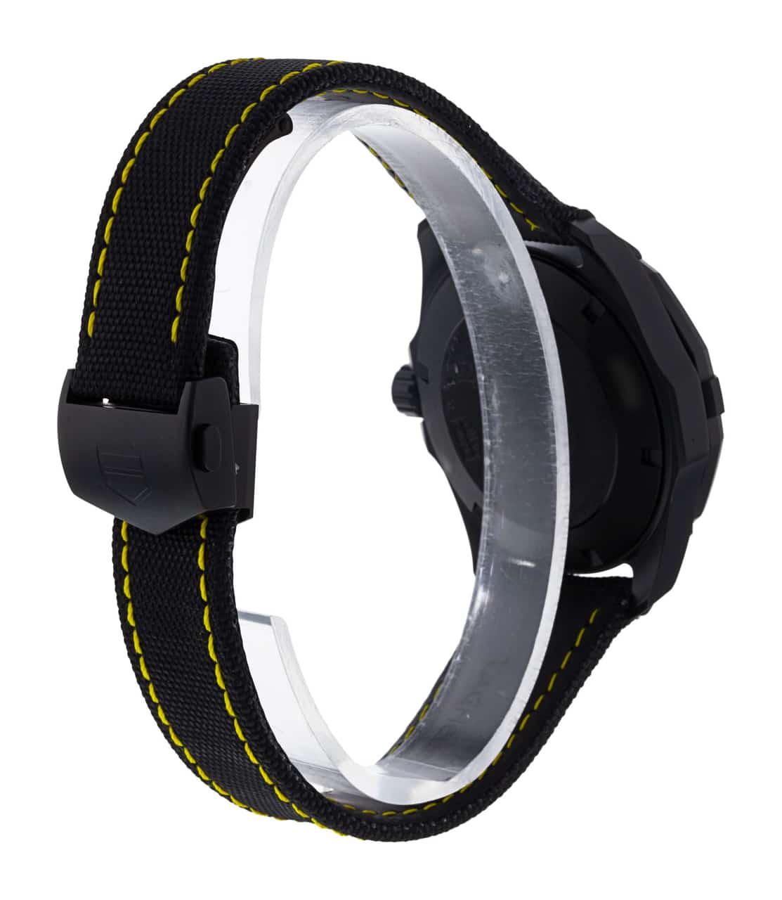 Swiss-made, this bold TAG Heuer Aquaracer is an aesthetic 41 mm watch. This model features a Titanium Carbon case and a Calibre 5 Automatic movement.