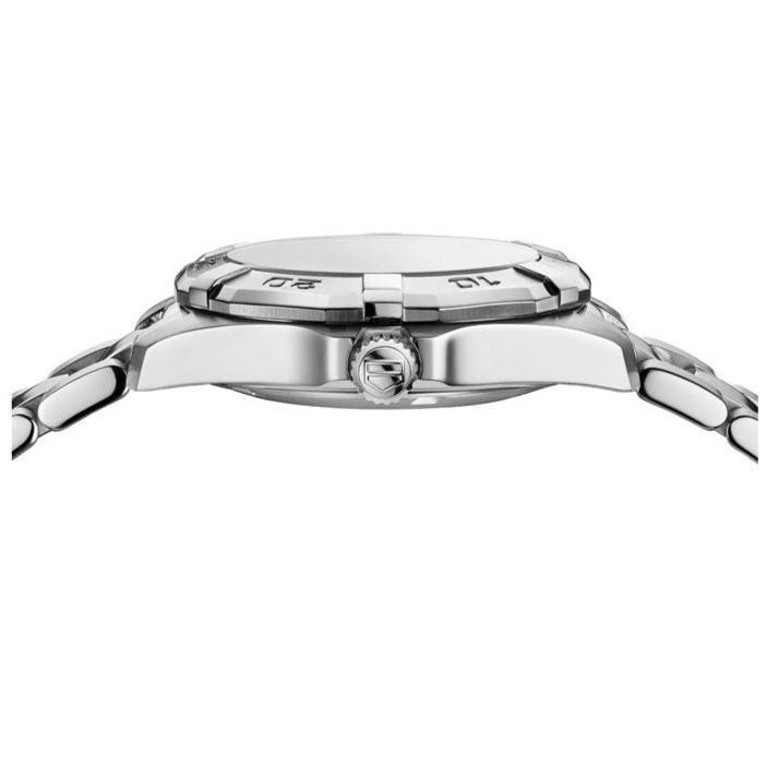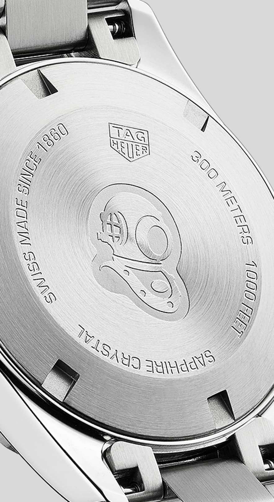 For the woman who wants both beauty and performance, this TAG Heuer Aquaracer Ladies watch brings a refined, feminine aesthetic alongside an unbeatable Swiss made quartz movement. A luxury edition Aquaracer watch with 11 diamonds (0.11 CT) hour markers on a gorgeous green dial. The 32mm quartz watch is elegant yet loaded with sports watch features.
