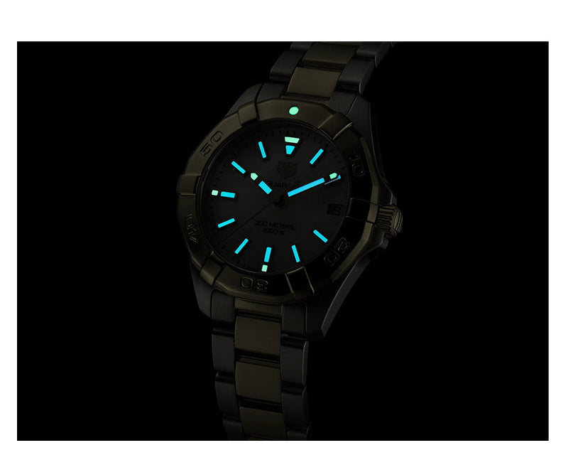 Adding a generous dose of glamour to the Aquaracer collection, this TAG Heuer Aquaracer Ladies’ Watch offers exceptional performance, presented within a 32mm stainless steel case with a stunning 18ct gold-plated unidirectional bezel. Driven by a Swiss-made quartz movement, the white mother of pearl dial is enhanced by striking gold-toned hands and baton hour markers with a luminescent coating, a date window at 3 o’clock and a printed logo at 12 o’clock. Water resistant to an impressive 300 meters, this elegant watch fastens with a stainless steel and 18ct gold bracelet.