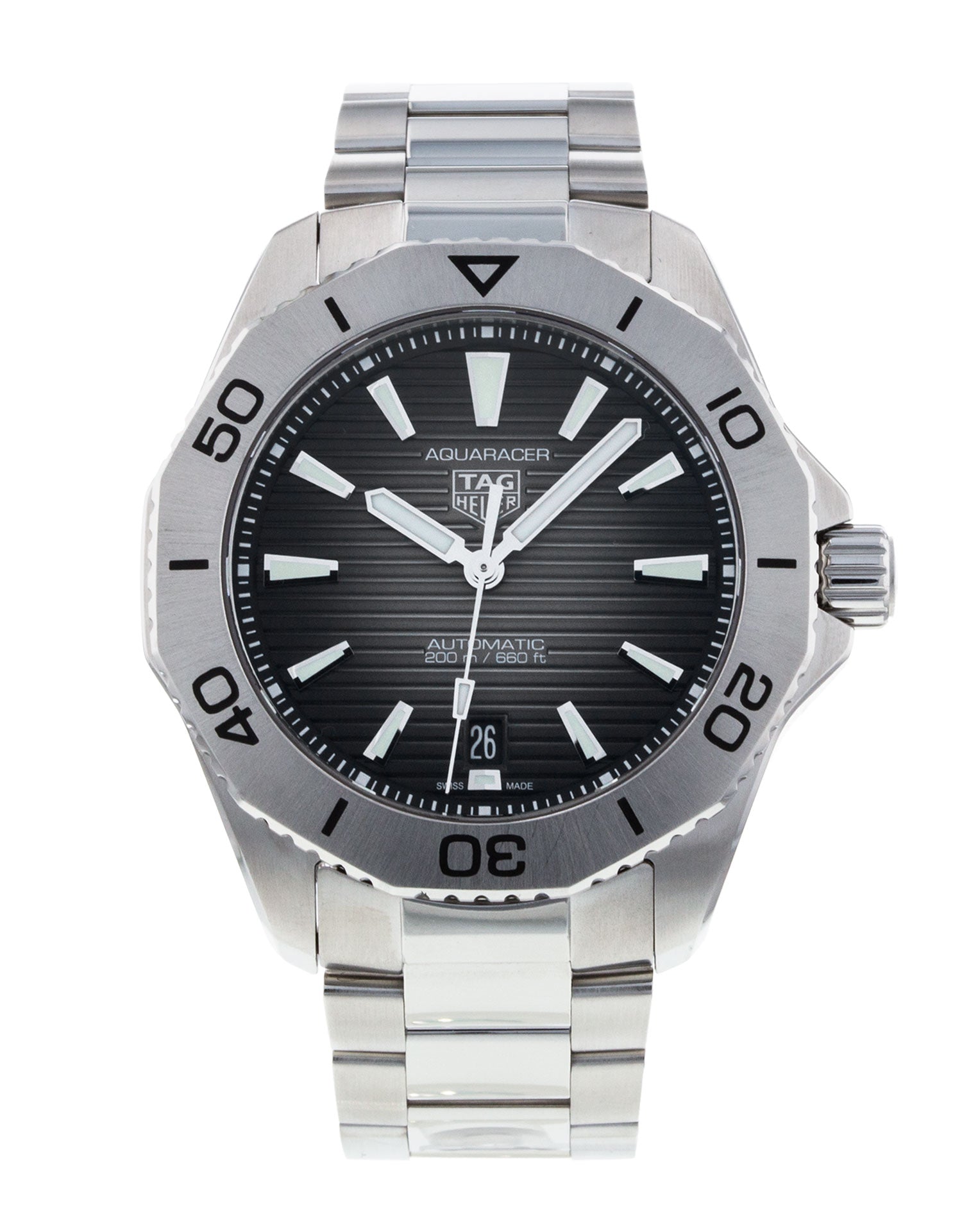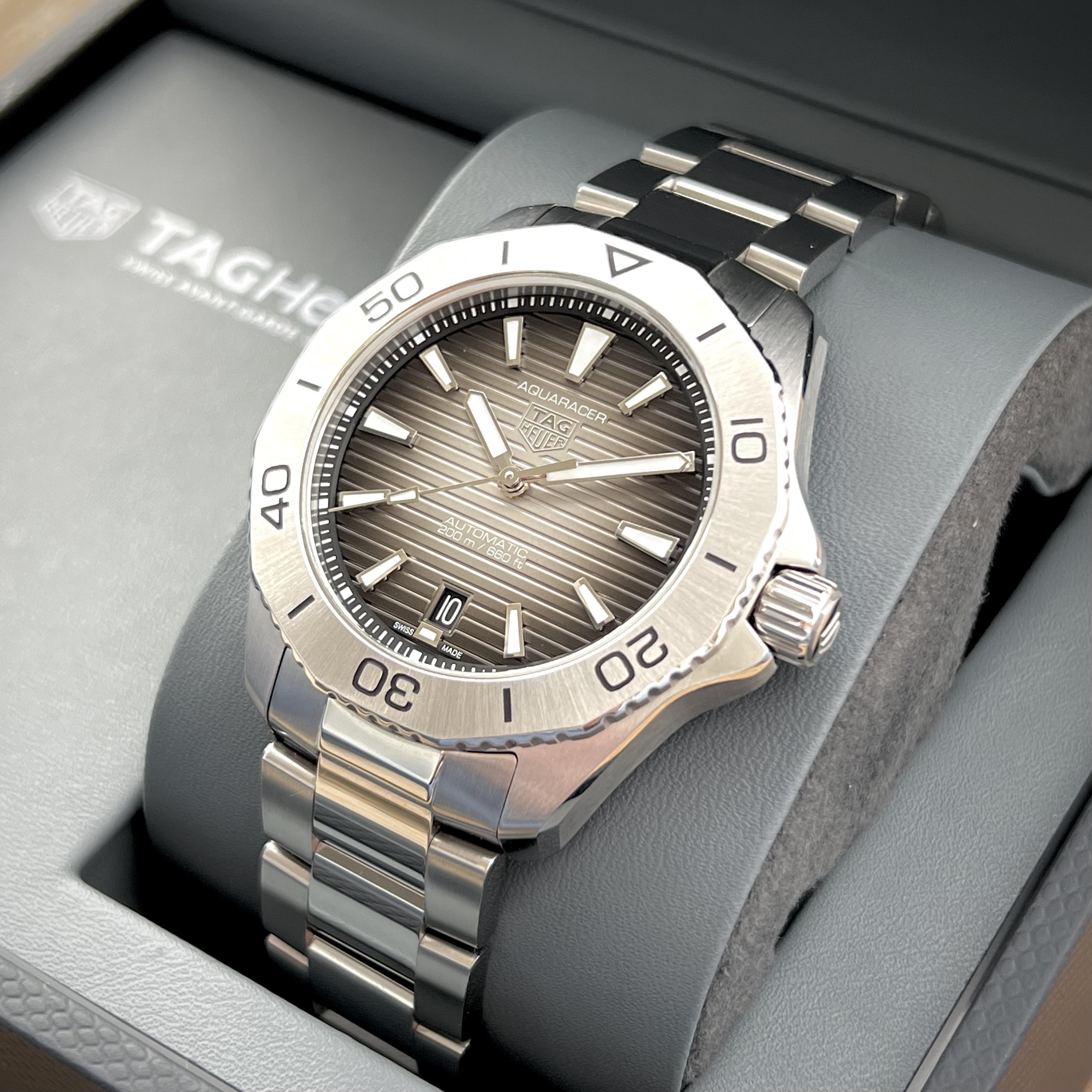 Built for heavy-duty performance and exceptional style, this TAG Heuer Aquaracer is a versatile tool watch that can go anywhere and do anything. Thanks to its dramatic new dial and superior ergonomics, it's an incentive to push oneself to the limits.