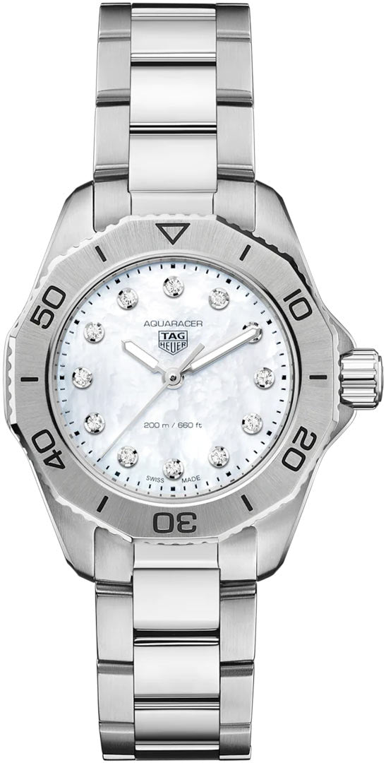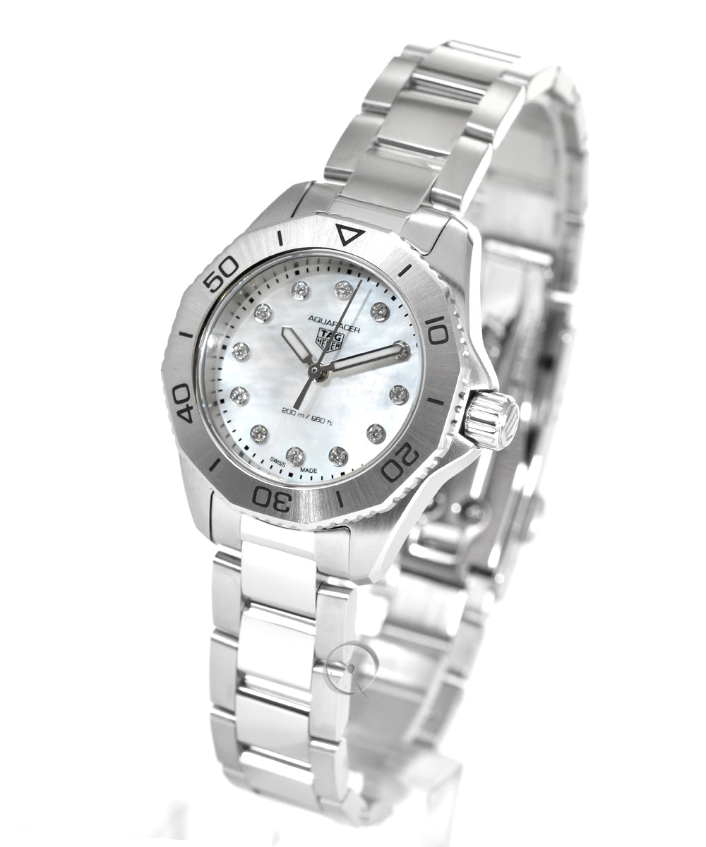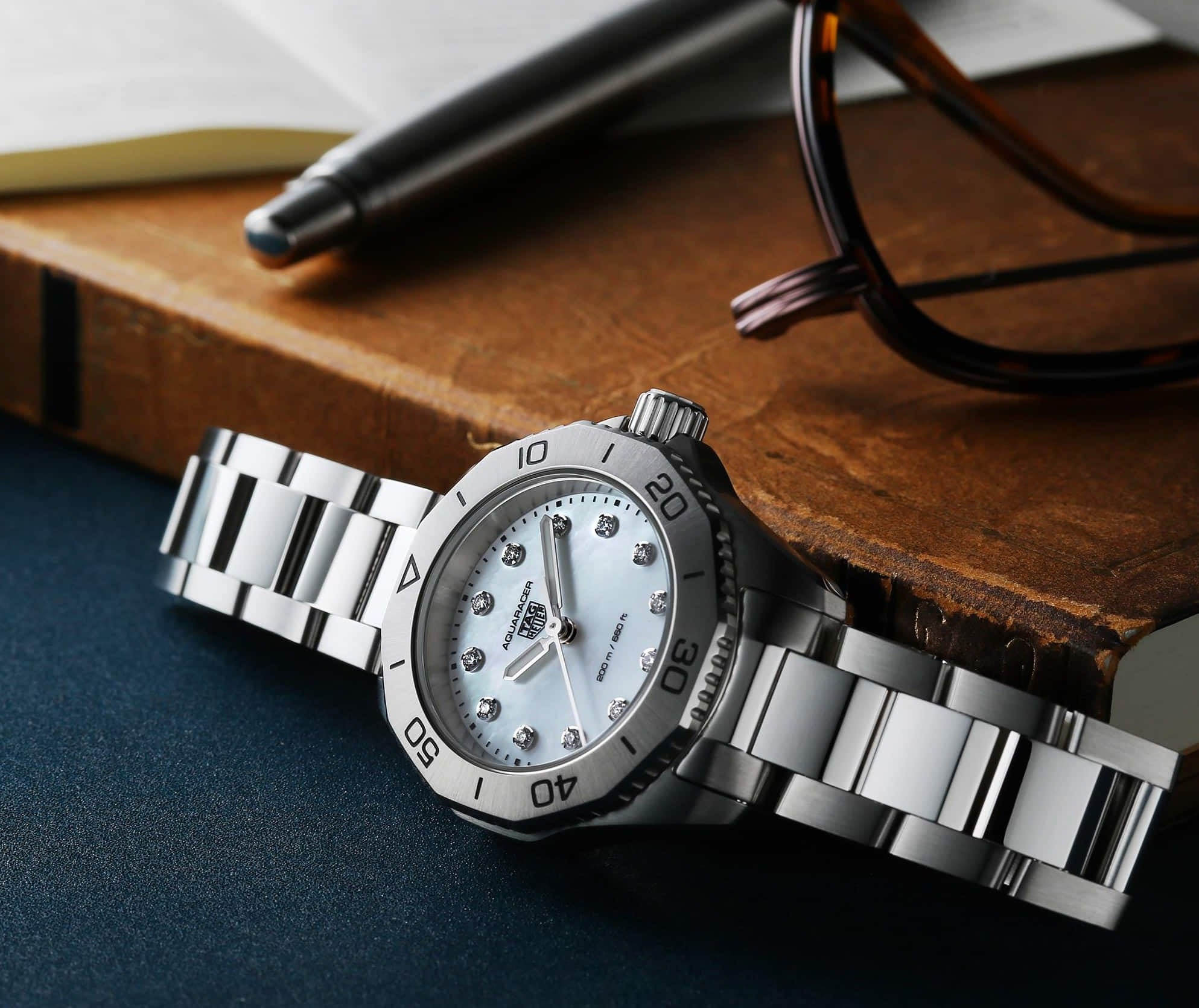 This TAG Heuer Aquaracer adds some sparkle to the versatile everyday companion. In addition to the diamond hour markers on of this 30mm watch, the dial itself is made from mother of pearl. A perfect incentive for going beyond the limits.