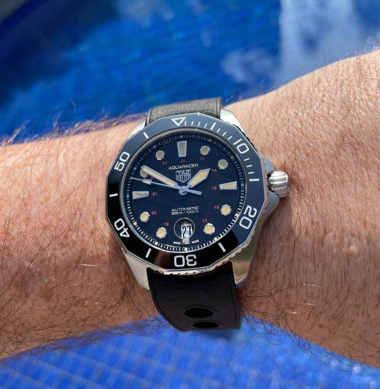 A professionnal tool for the deeps. Powered by the automatic Calibre 5 movement, the TAG Heuer Aquaracer features a black dial with wavy finishing. Its new slim case with tapered bracelet and adjustable clasp makes it fit for any achievement.