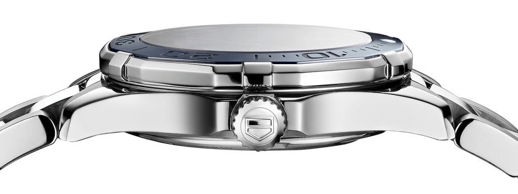 Glittering diamonds (0.1 CT) on a blue mother-of-pearl dial. A bezel of polished blue ceramic harder than steel. Featuring a steel folding clasp with double safety push-buttons and diver extension.