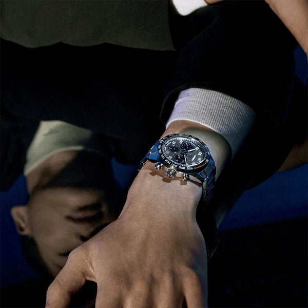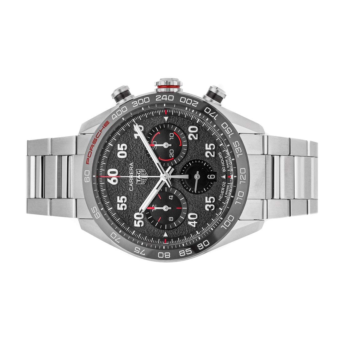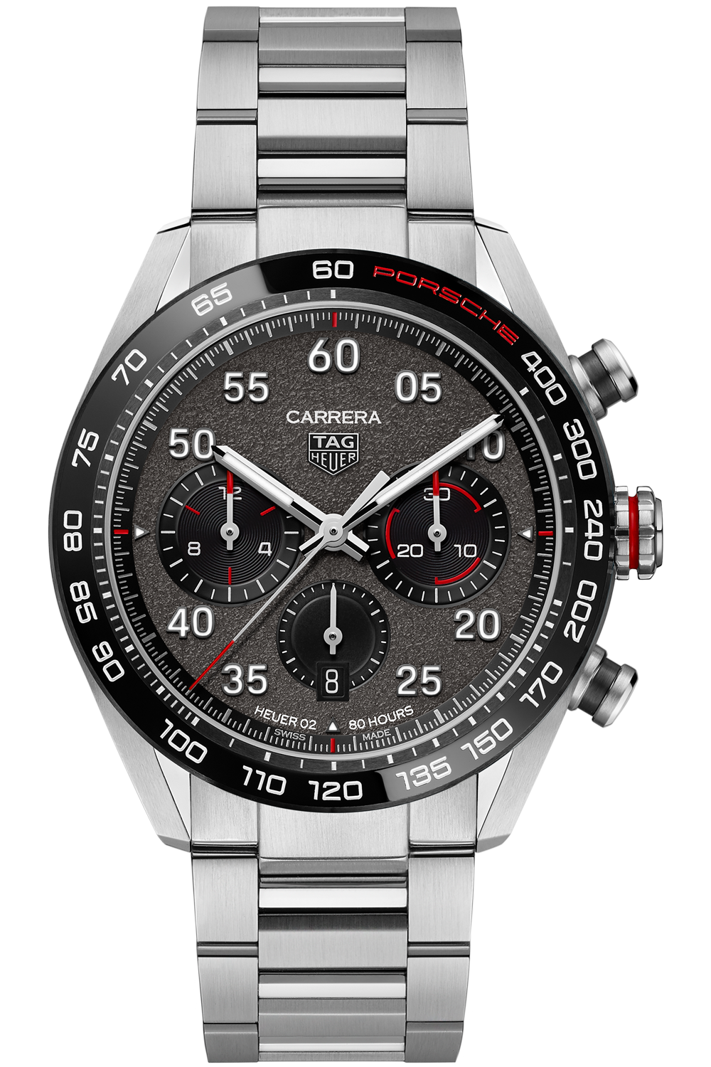 Fuelled by a common history with innovation and motor racing at its core, the TAG Heuer Carrera Porsche Chronograph is a seamless blend of the Porsche and TAG Heuer universes. An emblematic steel watch with numerous references to Porsche and TAG Heuer codes in form, color, and asphalt effect, created especially for this watch, perfectly expresses a passion for the road.