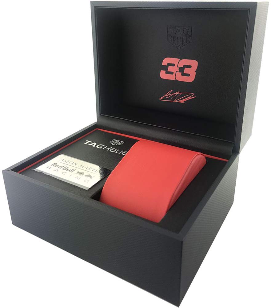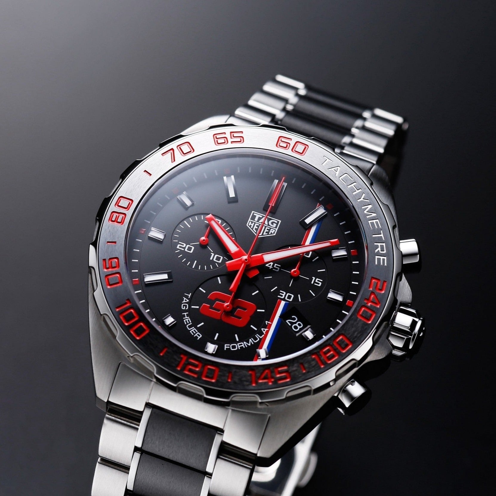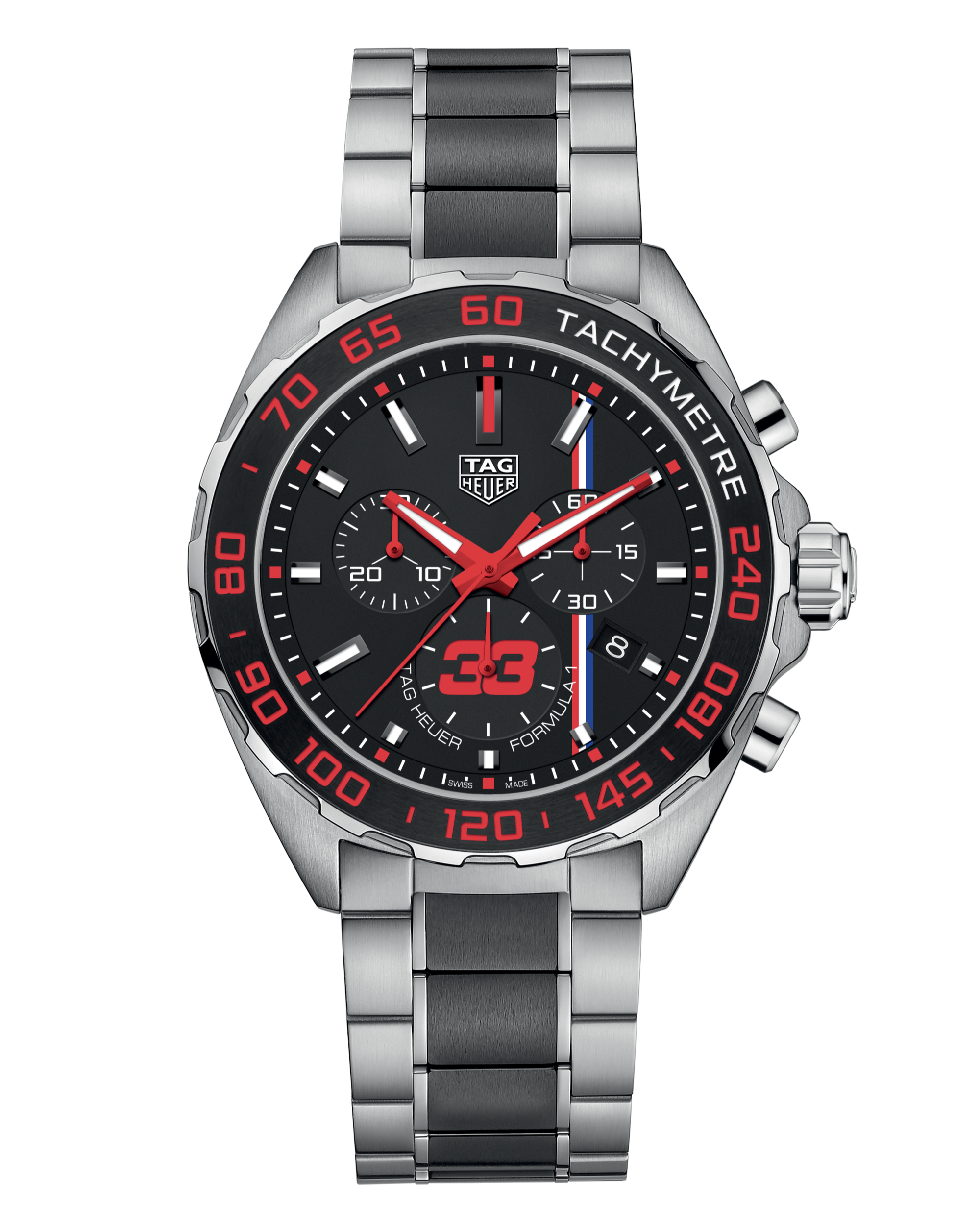 Created in cooperation with Formula 1 driver Max Verstappen, this limited edition Formula 1 timepiece bears the colours of the Dutch flag and is marked with the number 33.