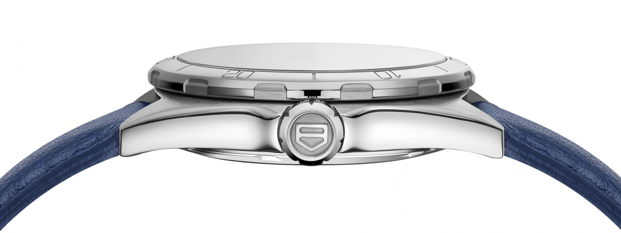 A very feminine quartz watch with the classic TAG Heuer Formula 1 combination of brushed blue dial and silver-toned details in a hand-finished 32mm stainless-steel case. The matte blue calfskin strap is lined with ultra-soft beige calfskin. A sports watch at once casual and stylish, for woman on the move.
