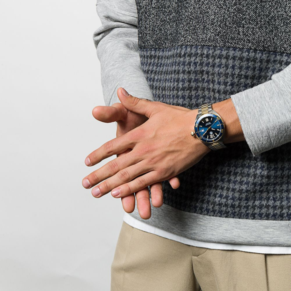 Blue Dial. Applied Luminous 2N Gold Plated Stainless Steel Indexes. Luminous 2N Gold Plated Stainless Steel Hands. Date Window at 3.
