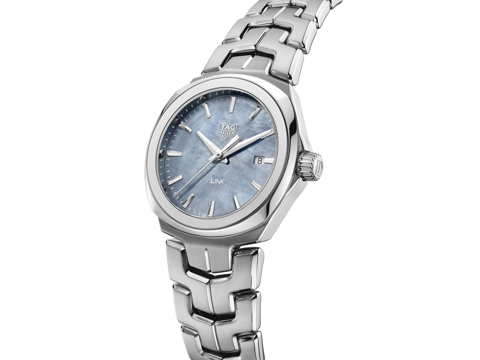 TAG Heuer Link 32mm watch. Model reference: WBC1311.BA0600. Stainless steel case. Grey mother-of-pearl dial. Quartz movement. Stainless steel bracelet. Swiss made. The watch comes in the original packaging, with a set of documents and 2 years warranty.
