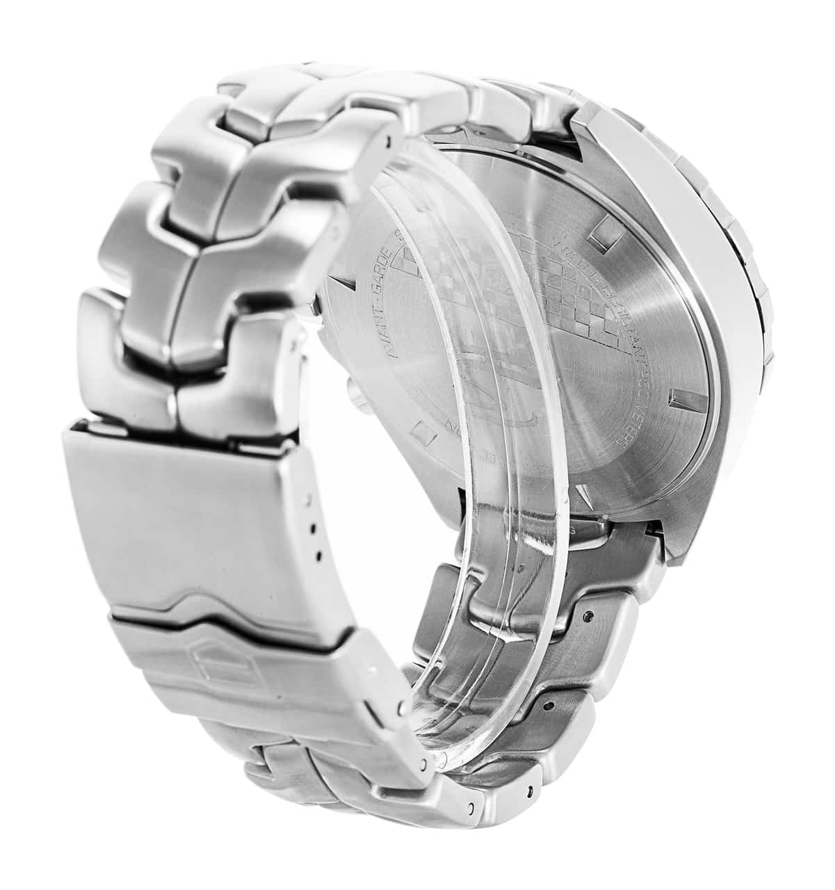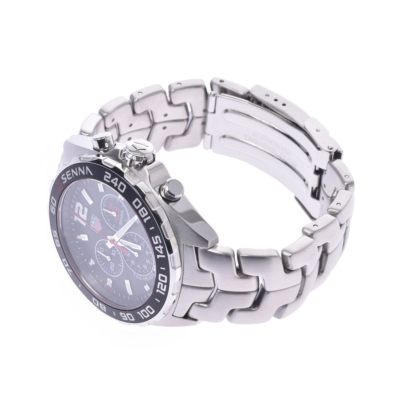 Date display at the 4 o'clock position. Chronograph - three sub-dials displaying: 60 second, 30 minute and 1/10th of a second. Quartz movement. Scratch resistant sapphire crystal. Screw down crown. Solid case back. Case size: 43 mm. Case thickness: 11.5 mm. Round case shape. Fold over clasp with a safety release. Water resistant at 200 meters / 660 feet. Functions: chronograph, tachymeter, date, hour, minute, second. Luxury watch style. Watch label: Swiss Made. Tag Heuer Senna Chronograph Black Dial Mens Watch CAZ1015.BA0883.