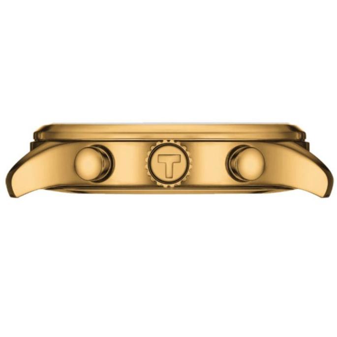 Calendar: Date at 4 o'clock. Chronograph sub-dials display: 1/10th of a Second, 60 Second, 30 Minute. Powered by ETA Caliber G10.212 engine. Watch functions: Date, Hour, Minute, Second, Chronograph. Pull and Push crown. Scratch Resistant Sapphire crystal. Round case shape. Case size: 45mm. Case thickness: 11mm. Solid case back. 100 Meters - 330 Feet water resistant. 2 year warranty. Also known as model: T1166173305100.