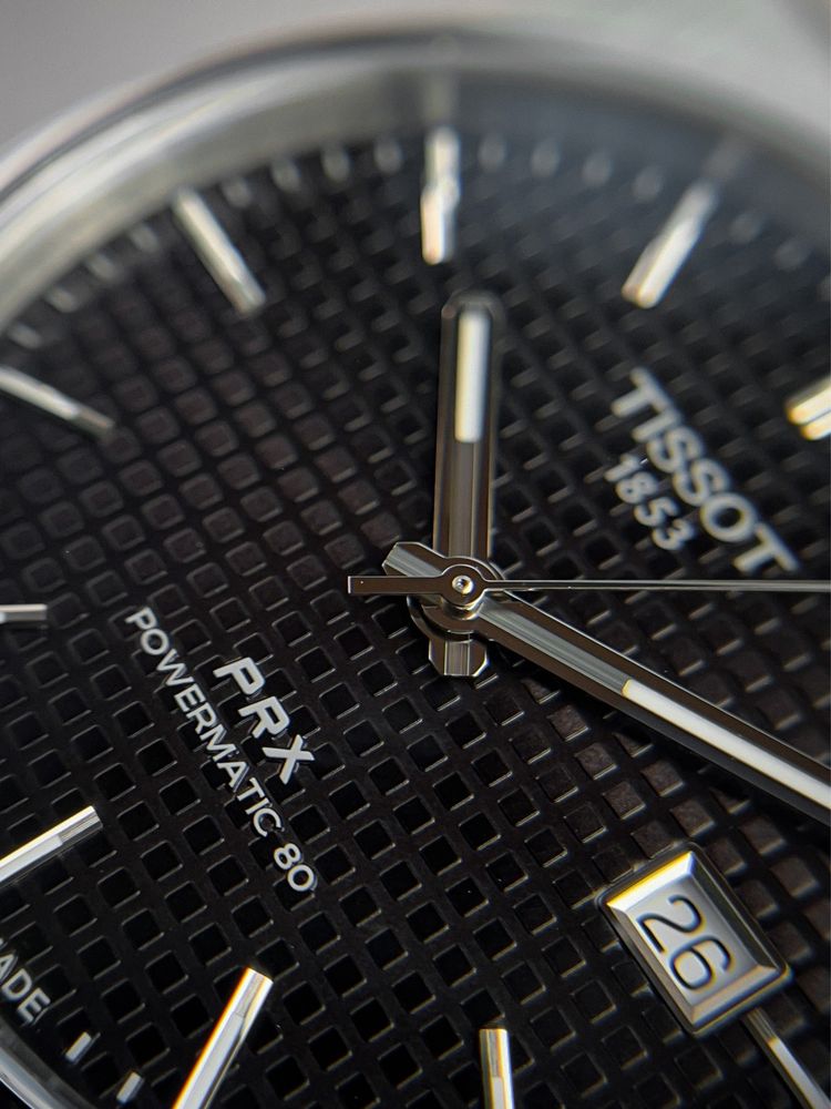 This can be found at the 3 o'clock index. The hour and minute hands, as well as the indices, are coated with a luminescent coating for better time reading in twilight or darkness.This Tissot PRX Powermatic 80 T137.407.11.051.00 men's watch belongs to the T-Classic series. The watch impresses at first glance with its unusual judgemental case shape and bracelet connection.