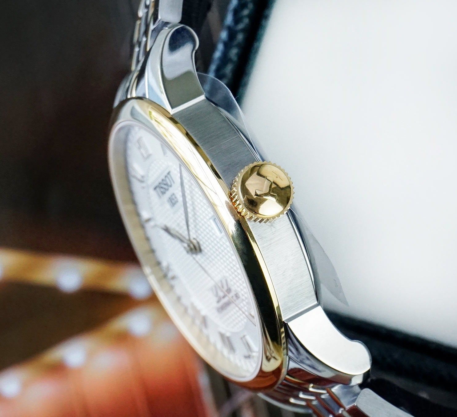 Introducing the Tissot T Classic Le Locle Powermatic 80 Silver Dial Two Tone Steel Strap Watch for Men. Combining sleek design and precise timekeeping, this watch features a silver dial, two tone steel strap and Powermatic 80 movement for exceptional accuracy. Elevate your style and stay on schedule with this sophisticated timepiece.