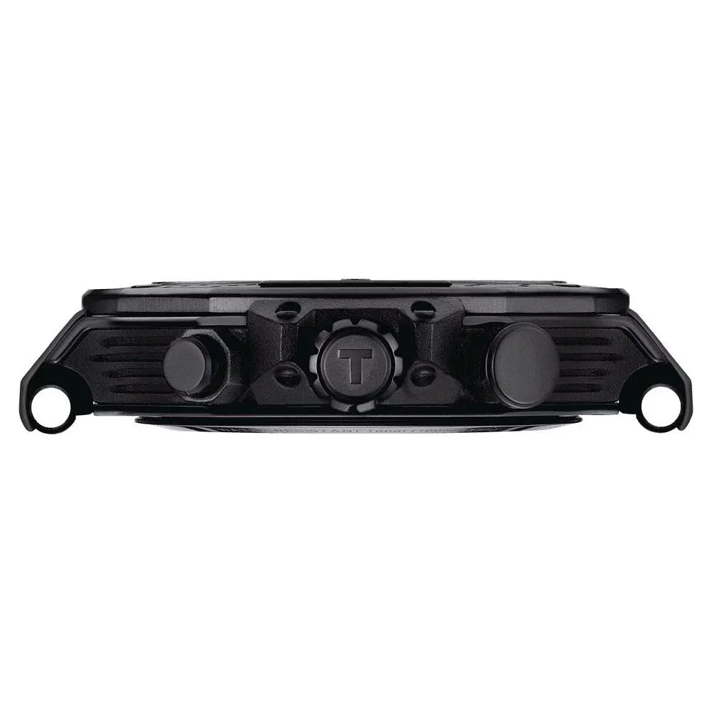 Swiss Quartz. Chronograph movement. Chronograph sub-dials display: Date, 30 Minute, Seconds, 1/10th of a Second. Calendar: Date between 4 and 5 o'clock position. Powered by Caliber 13 1/4''' engine. Watch functions: Battery End Of Life Indicator, Date, Hour, Minute, Second, Chronograph, Speed. Push-Pull crown. Scratch Resistant Sapphire crystal. Unique case shape. Case size: 45mm. Case thickness: 11.76mm. Solid case back. 100 Meters - 330 Feet water resistant. 2-year warranty. Also known as model: T1414173706100.