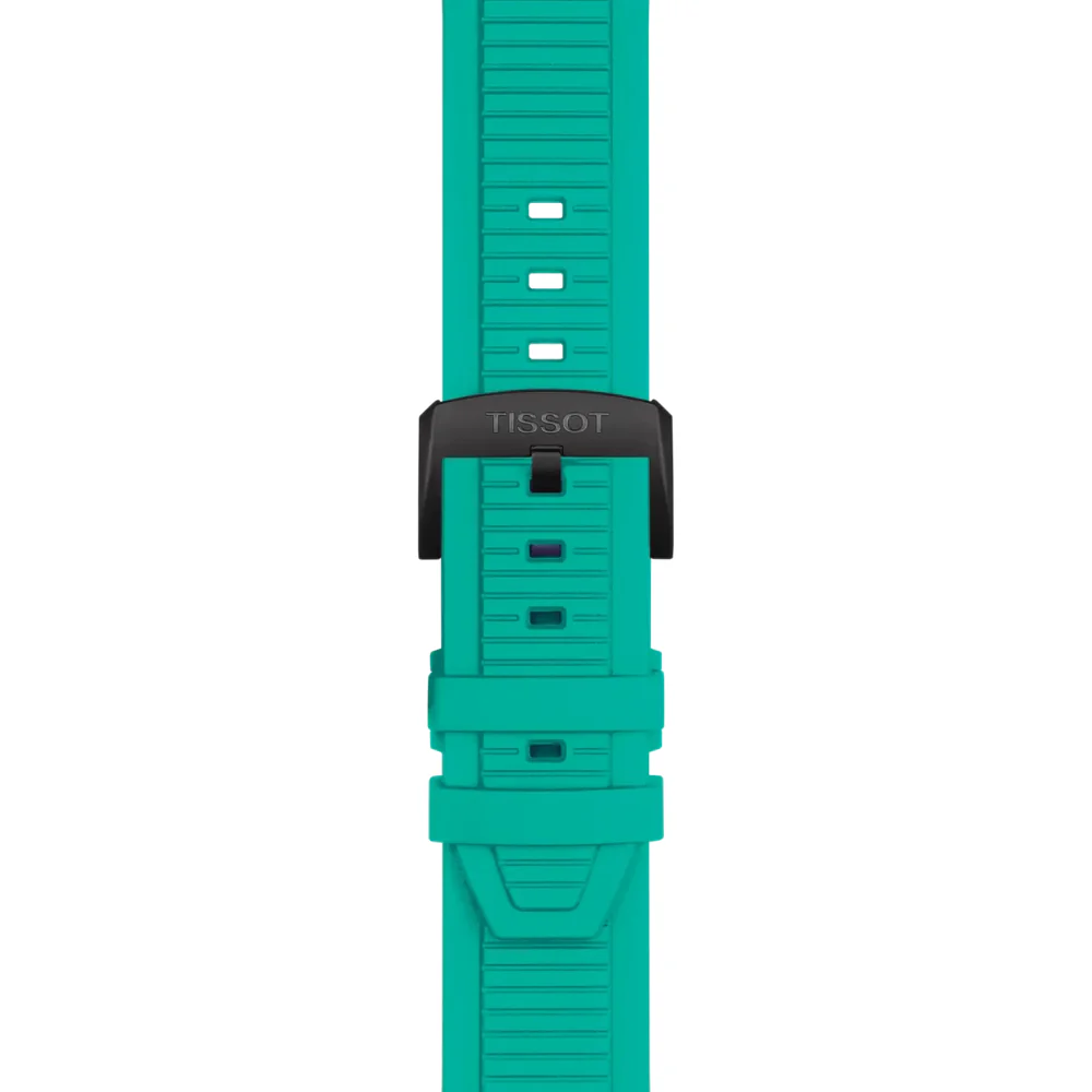 The functionality of the model includes a chronograph with a central seconds hand, 30-minute and 1/10-second counters, as well as ADD and split-chronograph functions. The indices and hands are covered with a luminescent coating Super-LumiNova®, providing excellent visibility in the dark. The turquoise silicone strap with a classic clasp provides comfortable wearing and secure fixation on the wrist. Water resistance up to 100 meters (10 bar) allows you to use the watch during swimming and other water sports.