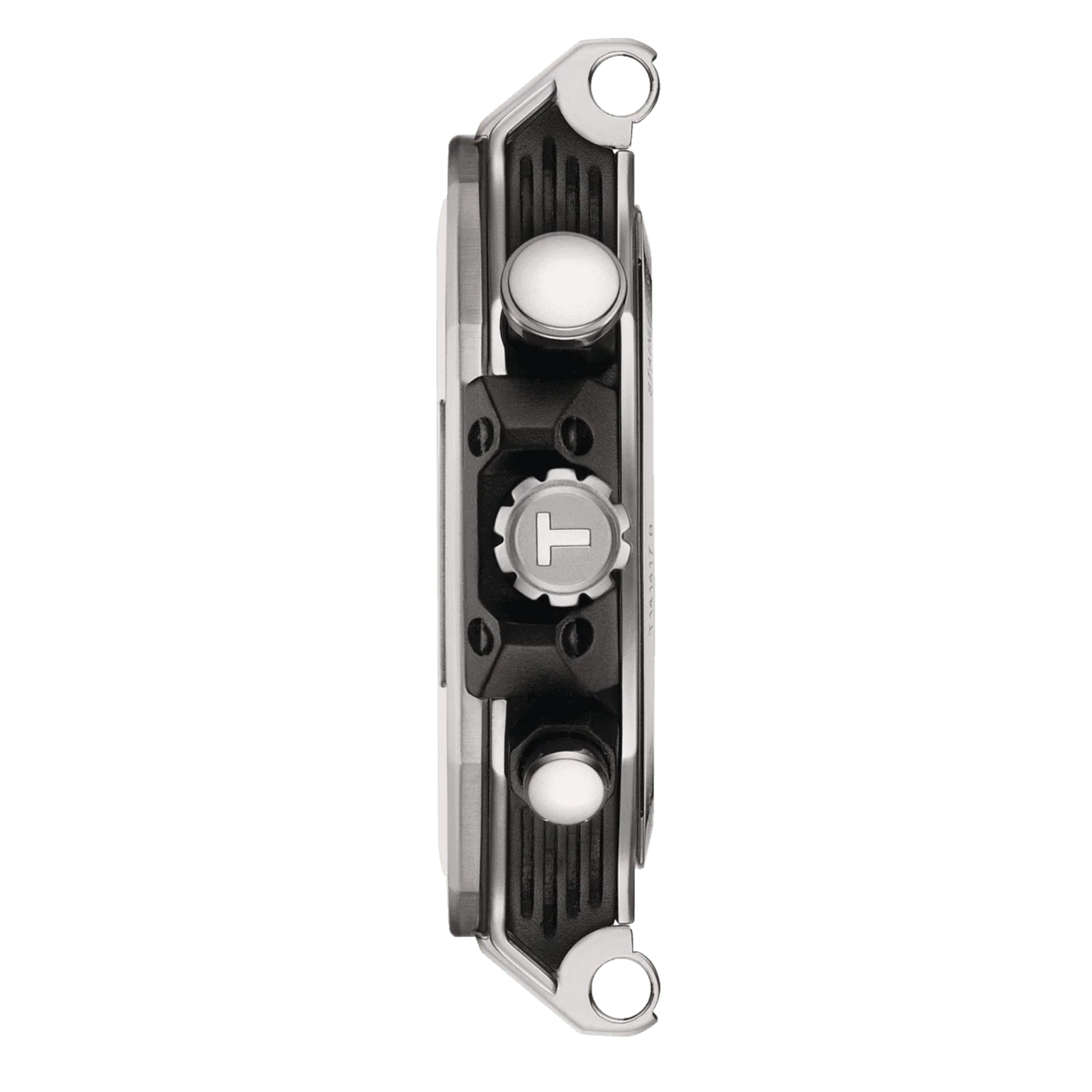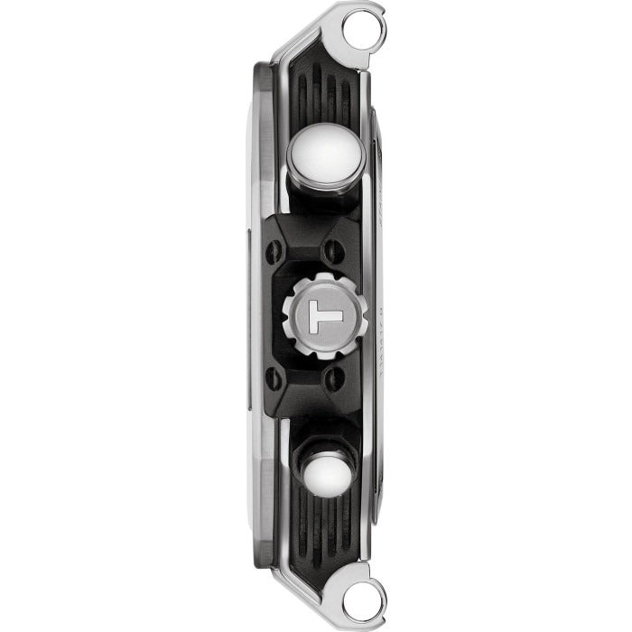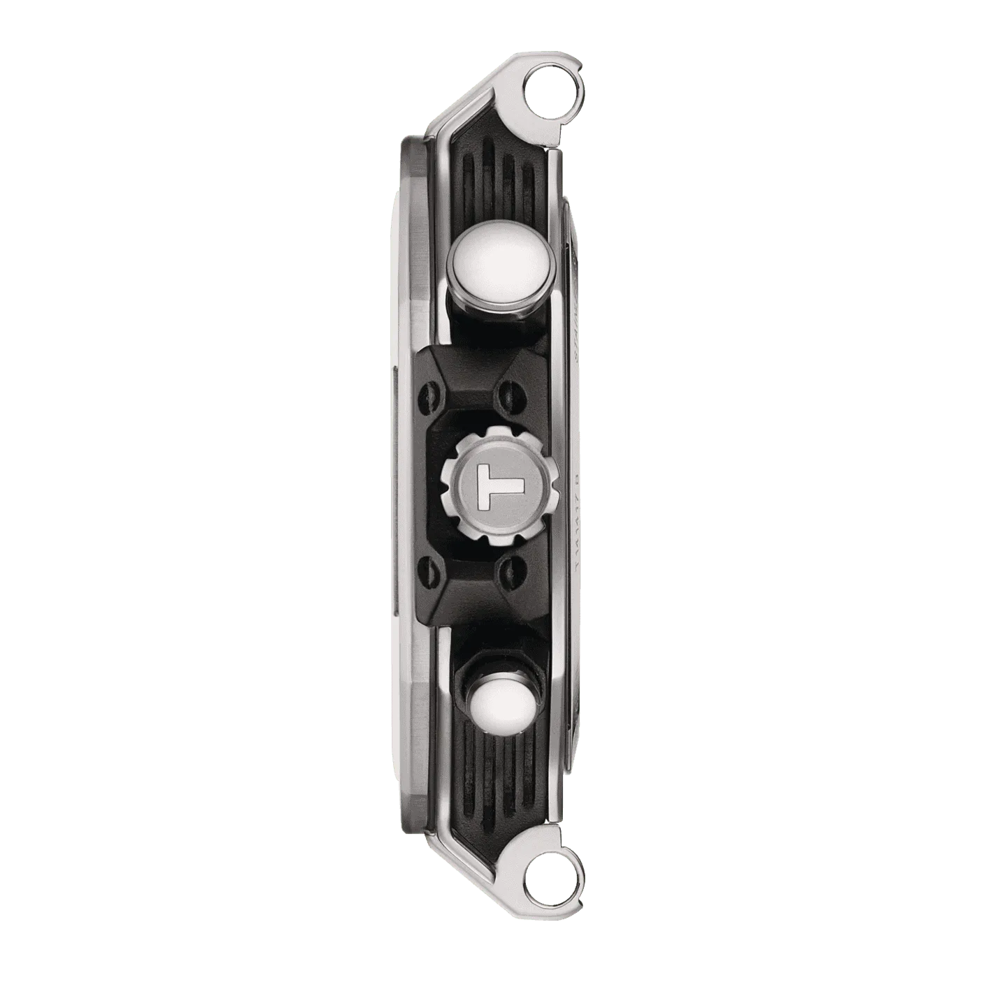 Chronograph sub-dials display: 1/10th of a Second, 60 Second, 30 Minute. Calendar: Date between 4 and 5 o'clock position. Powered by Tissot Caliber ETA G10.212 engine. Watch functions: Date, Hour, Minute, Second, Chronograph. Push-Pull crown. Scratch Resistant Sapphire crystal. Round case shape. Case size: 45mm. Case thickness: 11.80mm. Engraved Caseback. 100 Meters - 330 Feet water resistant. 2-year warranty. Also known as model: T1414171704700.