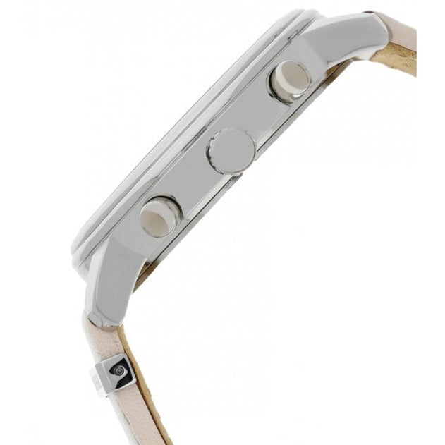 The case of the model is made in a classic silver color. The material is high-strength stainless steel. The dial is reliably protected by mineral glass. The display design will captivate you from the first minute with its delicate combination of silver canvas and pink indication. Three mini displays reflect additional features. The width of the model case is 38 mm. Water resistance is 30 m. Powder-pink leather strap is attached to the case very firmly. The buckle is steel, reliable. Belt holder with engraving of the brand name.