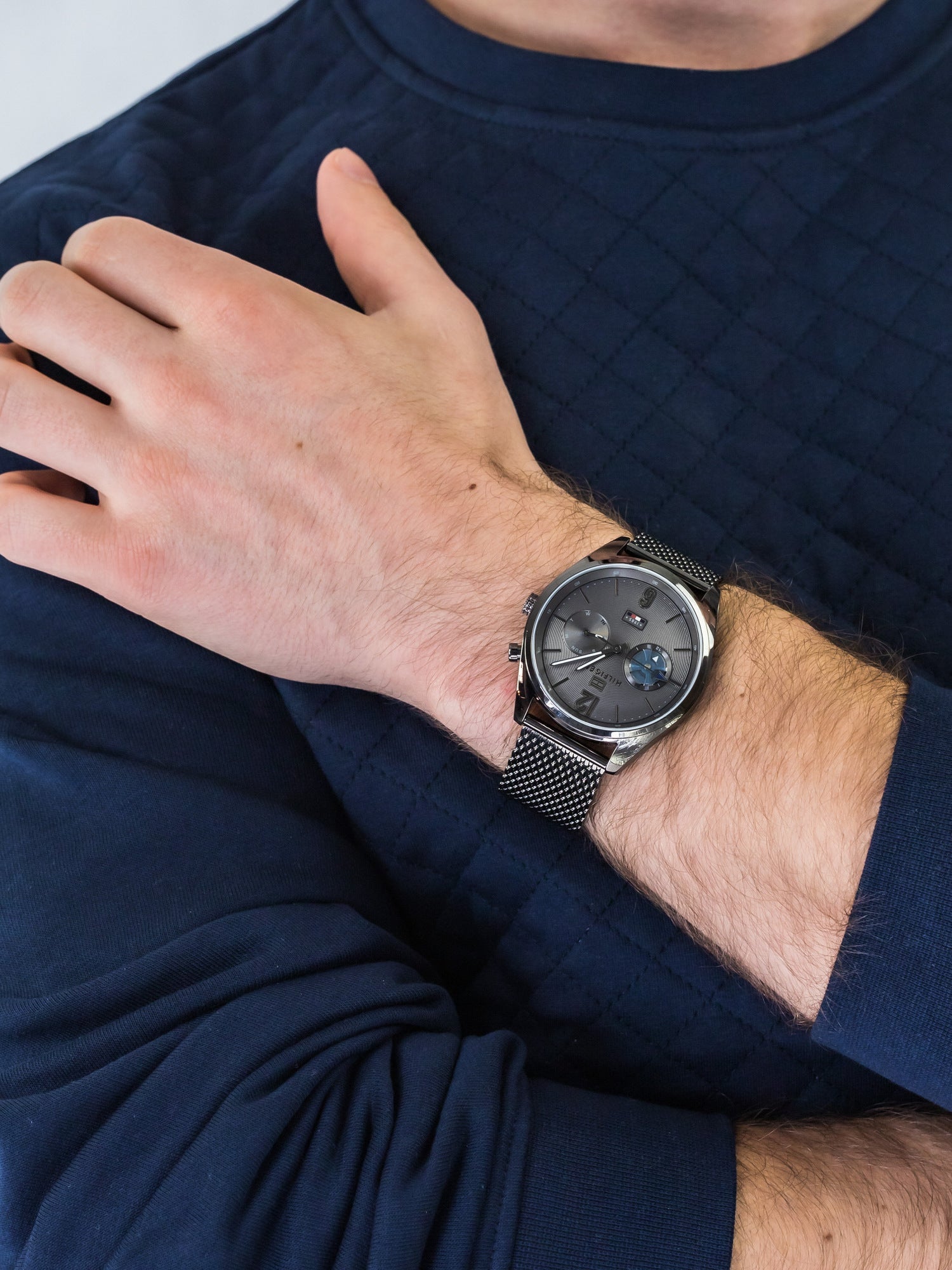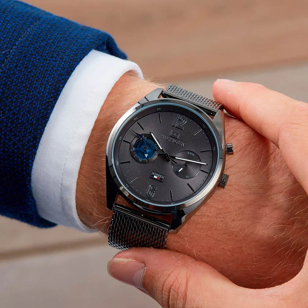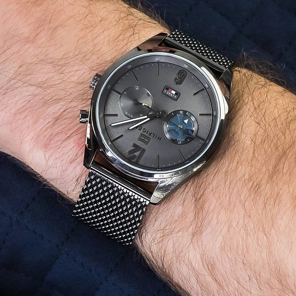 - Men's Deacan Gunmetal Grey Mesh Strap Chronograph Tommy Hilfiger Watch 1791546