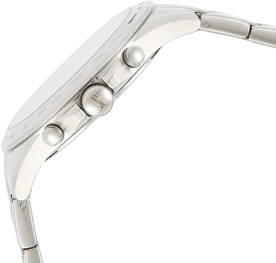 This multifunctional watch from Tommy Hilfiger's Haven collection features a sleek white dial and a silver steel strap, perfect for any modern woman. Boasting a chronograph function and versatile style, this timepiece effortlessly blends fashion and function. Elevate your wardrobe with this must-have accessory.