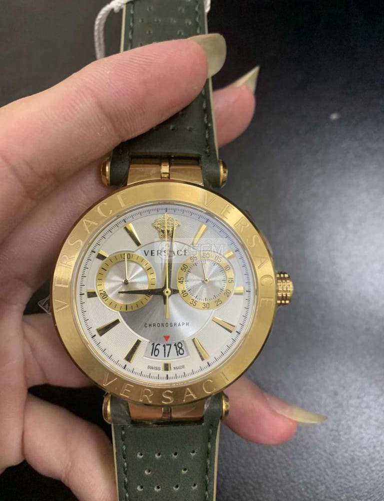 Elevate your everyday style with the Versace Aion Chronograph Watch. The striking white dial combined with a green leather strap exudes sophistication and elegance. Accented with a chronograph function, this watch is perfect for any man who values both fashion and functionality. Experience luxury with every wear!