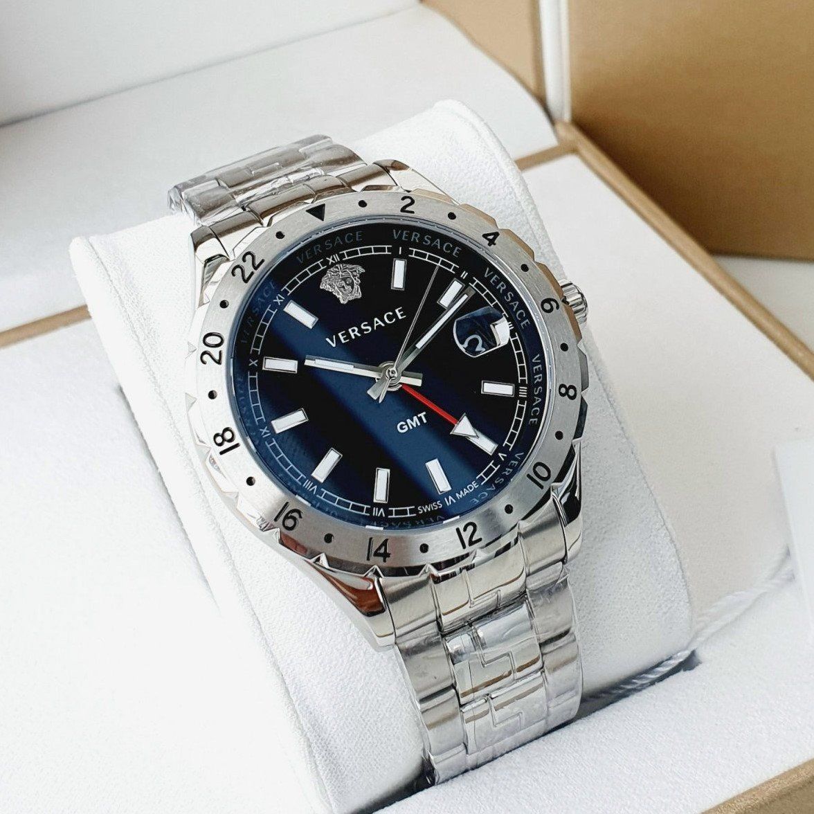 At the heart of this timepiece is an quartz movement (with battery) that, as is usual for Versace watches, guarantees precise timekeeping and provides the following functions: date, minute, second, hour, 2 timezones.