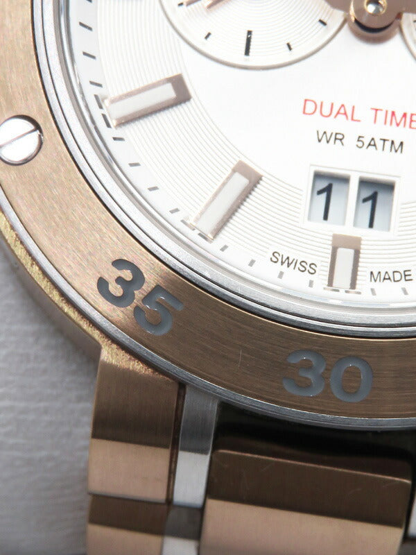 Highly accurate battery powered Swiss Quartz mechanism. Dual time, small seconds sub-dial, date window.