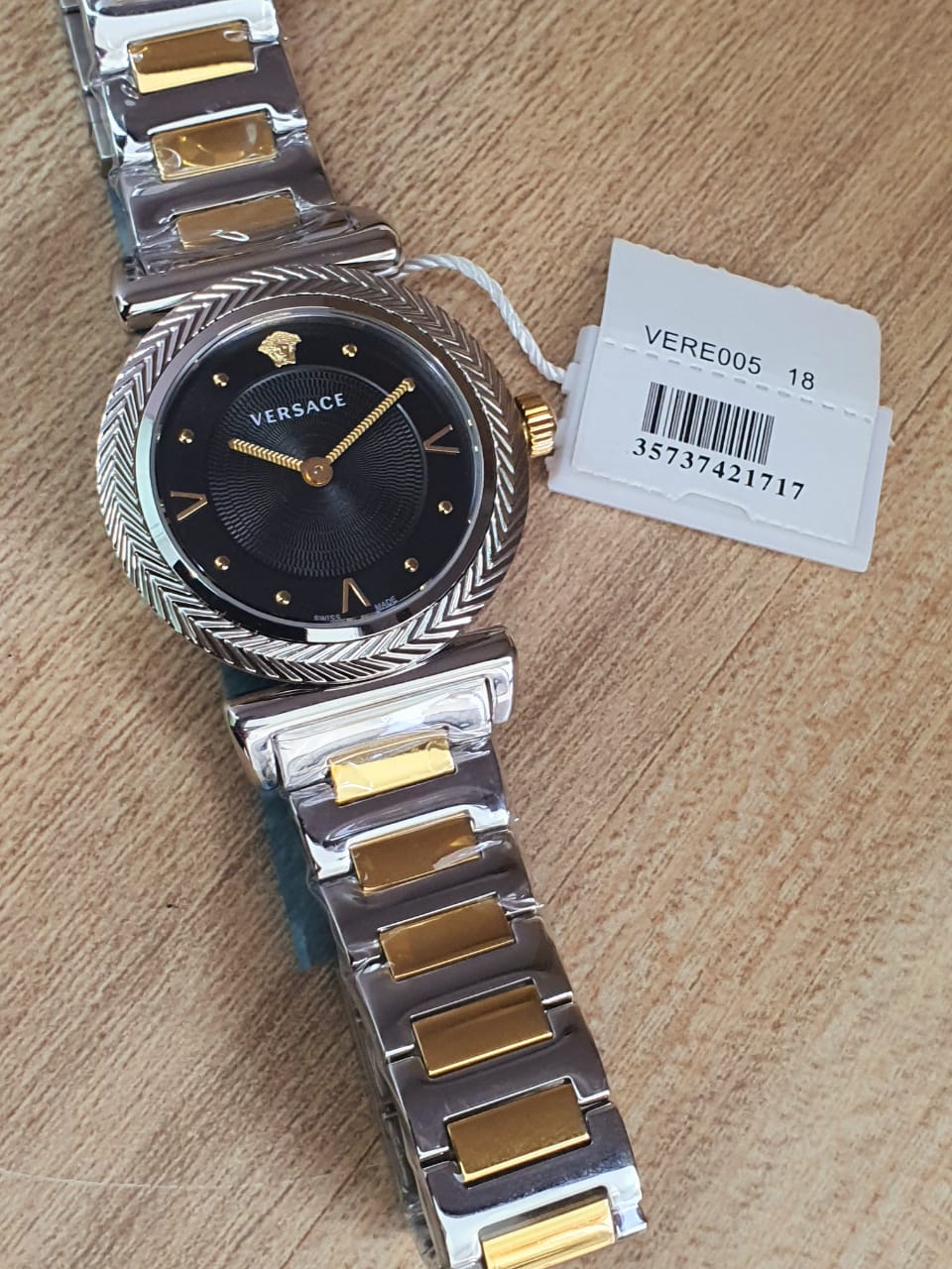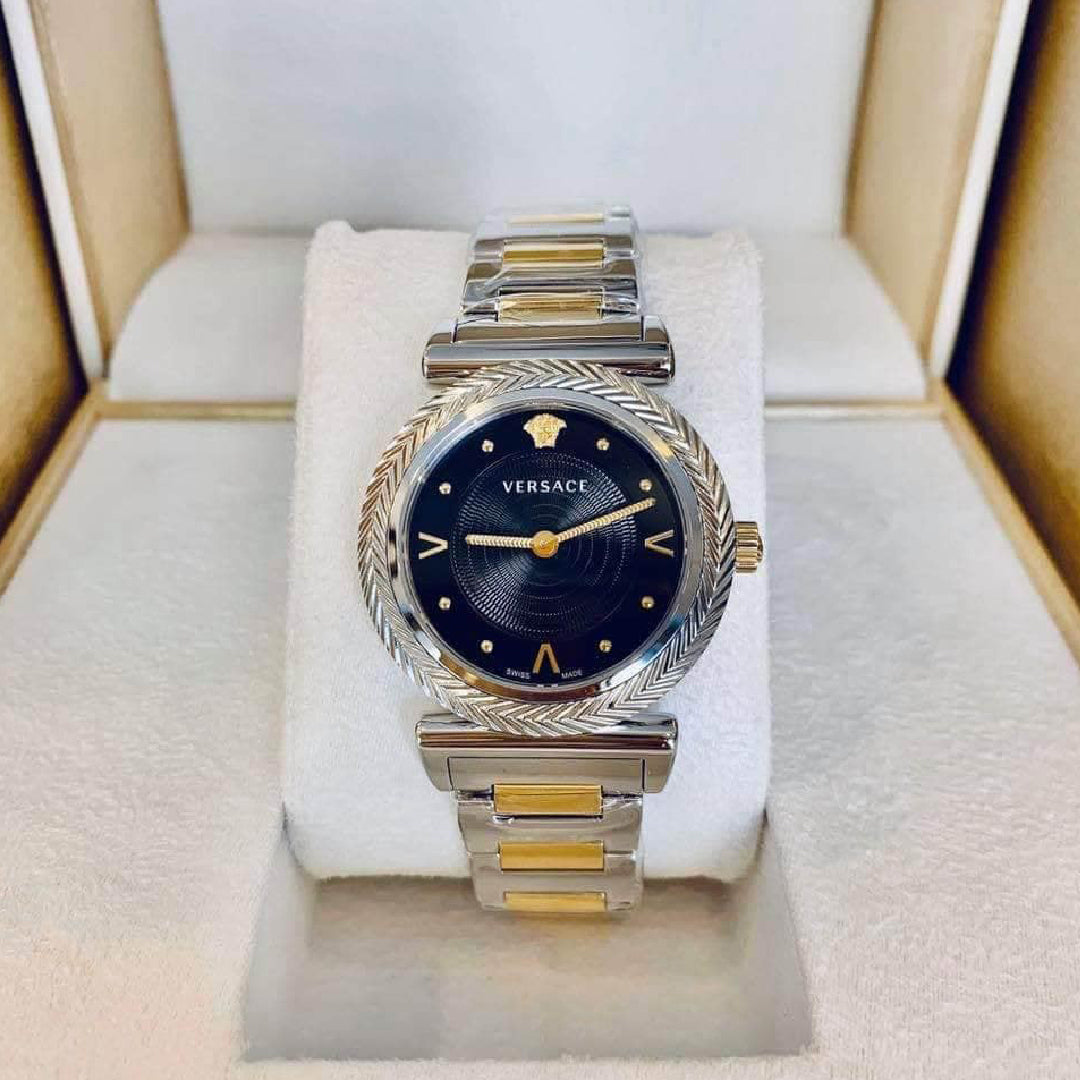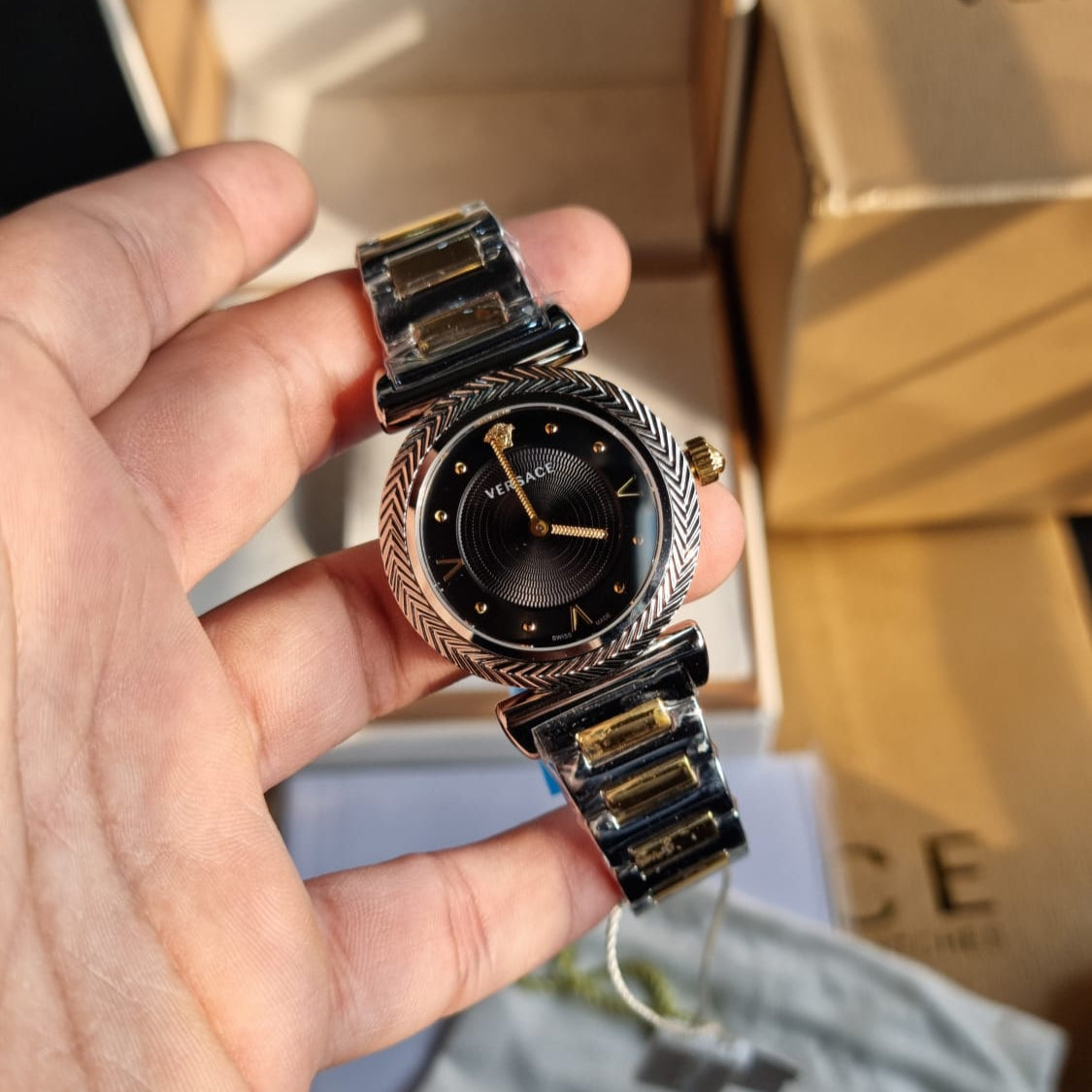 Indulge in luxury with the Versace V-Motif Black Dial Two Tone Steel Strap Watch. Featuring a bold V-motif black dial, this watch exudes elegance and sophistication. The two-tone steel strap adds a touch of modernity, making it the perfect accessory for any occasion. Elevate your style with this stunning timepiece!